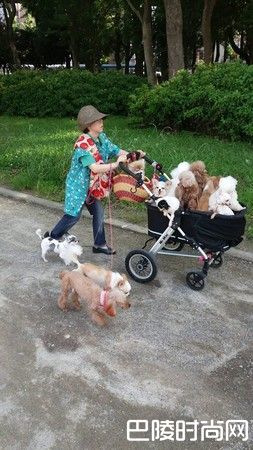 社团有点毛毛的写道,大阪看到欧巴桑在遛狗。画面中,身形小小只的妇人推着一辆大推车,里面装着吉娃娃、贵宾犬等小型狗,推车手把上挂着一个提篮,里面也装着一只小狗,她的右手则牵了2只吉娃娃和1只贵宾犬,加上胸前包包里的隐藏版小狗,算一算总共有13只。