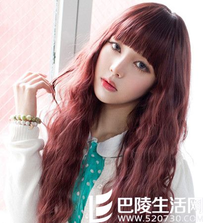第二种要为大家介绍芭比烫。要想像芭比娃娃一样可爱或是优雅动人,那么你可以考虑去烫个芭比烫哟!所谓芭比烫,是用细密的发卷烫出来的,顾名思义,烫后的效果很像芭比娃娃。短的芭比烫头看起来活泼可爱,而长的芭比烫头看起来就像芭比娃娃那样多了几分成熟优雅。不过呢,如果你像上图的妹子那样将头发染成酒红色,再搭配上减龄神器齐刘海,那么看起来萌感可是要大于成熟感呢!另外,深棕色芭比烫、浅金色芭比烫在小编看来也是不错的!不过类似于浅金色那样的发色,小编还是建议白皮的妹子去尝试呢。