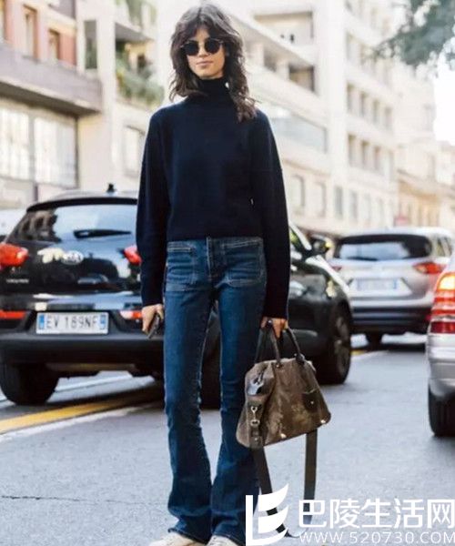 高领毛衣+牛仔裤:牛仔裤是百搭单品,每个人的衣柜中都少不了它。图中的街拍照片中,酒红色的紧身高领毛衣,将上半身的身材曲线很好的展现了出来,然后下半身选择了一条蓝色紧身牛仔裤,将毛衣的下摆随意的扎进了裤子里,整个人的身材曲线就出来了。这样的搭配,如果走在大街上,一定可以吸引到很多人的目光,回头率绝对很高!