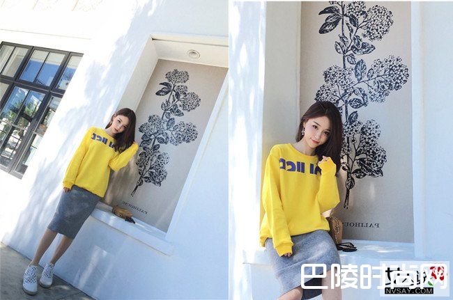 小编点评:半长裙是裙装中优雅的代表,用来搭配卫衣不仅显得女生优雅柔美,而且卫衣的所具有的动感活力,也让整体多了几分率性自由。