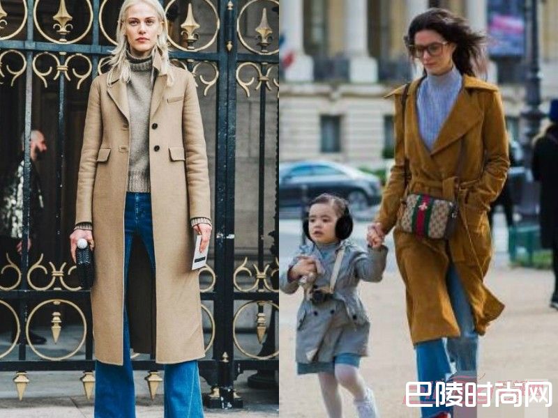 当然了,除了同色的搭配之外,还可以利用下对比色的搭配,这样就更加容易拥有回头率了,搭配功底深厚的宝宝可不要错过了,卡其色呢大衣搭配蓝色牛仔喇叭裤,冷暖色系的对比,同样可以加入一些撞色元素来点缀,这样很好起到了吸晴效果。