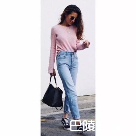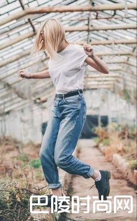 如果你的大腿比较粗,那么上半部分偏宽松而下半部分较窄的男友裤就非常适合你,既能藏住大腿的肉,又可以利用小腿处的收紧而在视觉上显得腿更细。