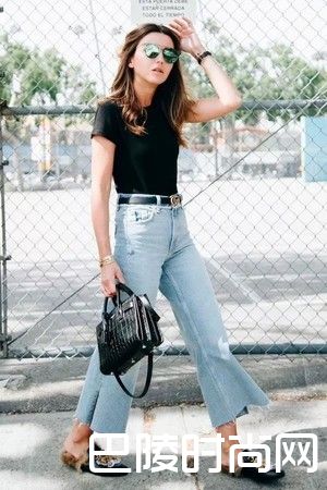 看似可以隐藏一切粗腿的阔腿牛仔裤,对于胯宽的女孩来说也不那么友好,许多阔腿裤的臀部轮廓都会做得偏大,会让胯宽的女孩看起来更加的臃肿。