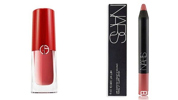 (左)Giorgio Armani 奢华订制柔雾唇露#506 NT$1,250、(右)NARS 丝绒迷雾唇笔#Dolcevita NT$,950