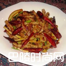 干炒猪肉丝猪肉300克,酱油1茶匙,盐1/8茶匙,菜油50毫升,干辣椒15条,辣椒酱30克(最好是四川郫县豆瓣酱),老姜15克,切丝,蒜1瓣,切丝,芹菜80克,卤豆腐干70克,酱油1茶匙,花椒粉1捏