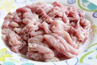 2.肉丝用油、生抽、胡椒粉、生粉、料酒、鸡精腌制
