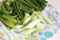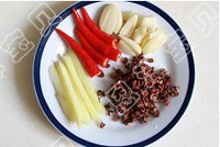 3.麻椒、姜、蒜、小米椒,蒜苗分别切好
