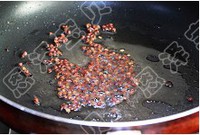 4.锅中倒入油,中小火将麻椒放入爆香;将麻椒倒掉不用