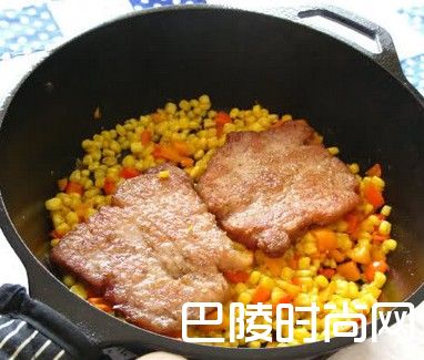一、生铁锅热放油,再放猪排,收慢些火,两边煎;
