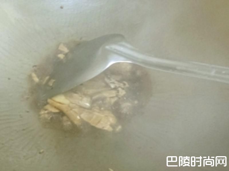 2老姜用刀背拍扁炒锅内放黑麻油爆香姜片