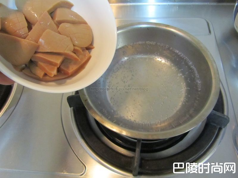 8水滚放入猪腰,川烫30秒捞起