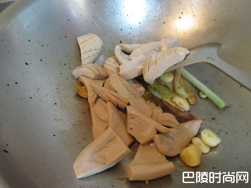 葱白、姜、蒜爆香,再放入沙茶、酱油