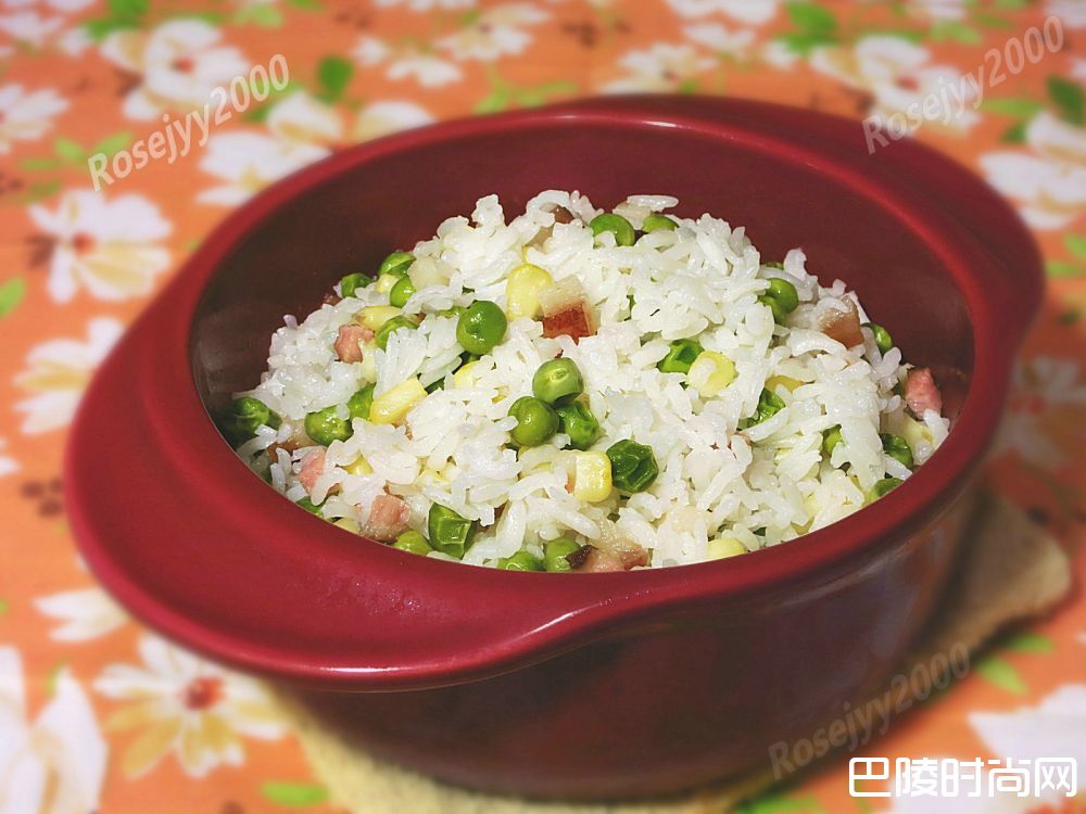 大米约2杯 玉米粒1/2杯 青豆1/2杯 咸肉约50克