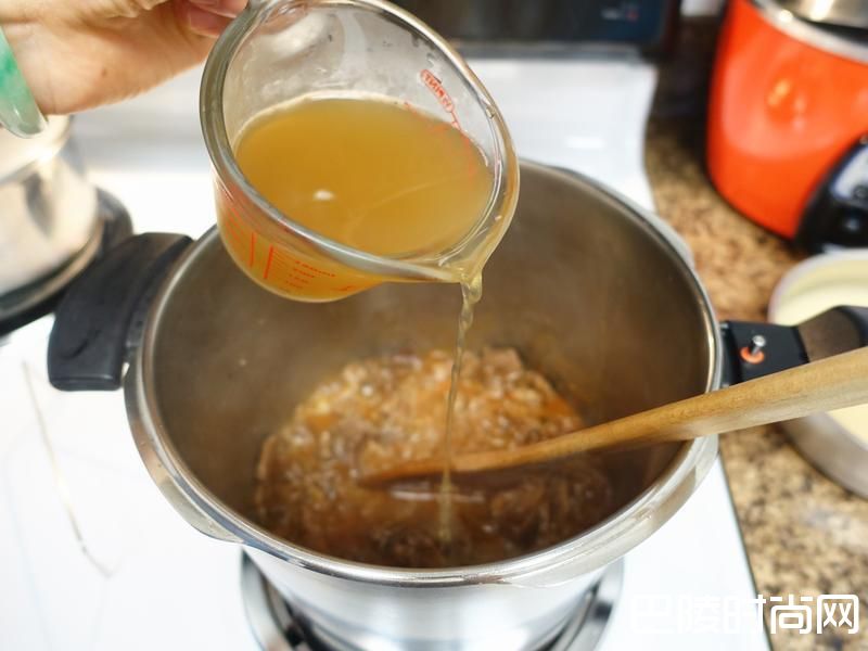 7分五次加入鸡汤 也一样要确实拌匀再加入下一次