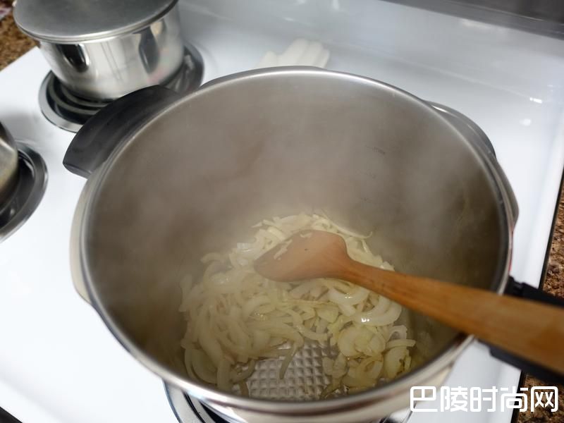4油热(出现细油纹)下洋葱 炒到金黄