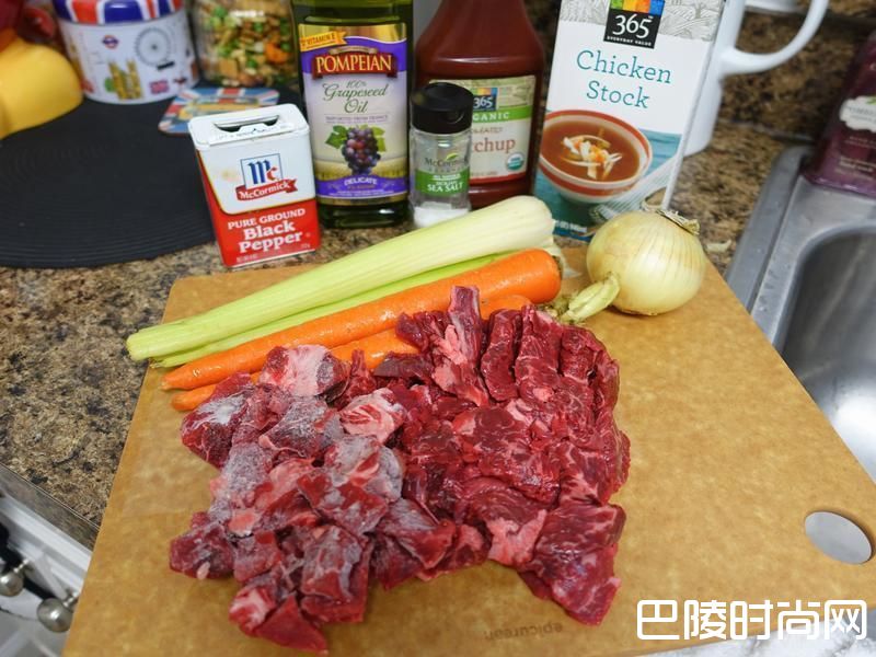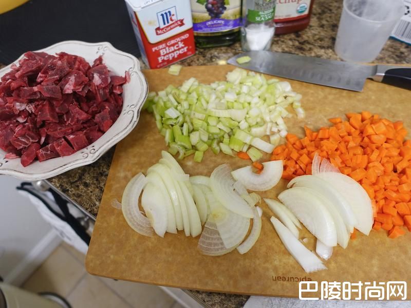 2洋葱切片 胡萝卜芹菜切丁肉块大块切小 如果是大人要吃 保持肉块状态比较有口感