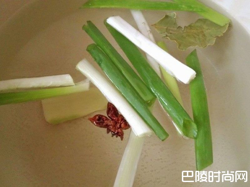 21000cc的水放入姜片、青葱、八角、月桂叶