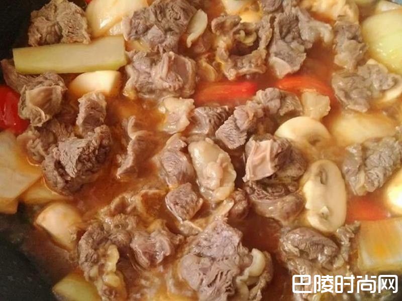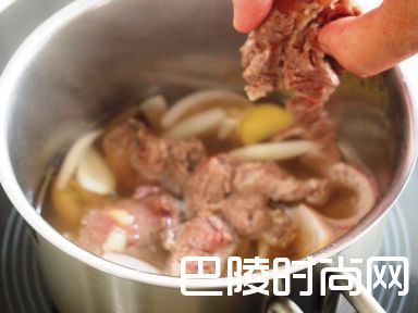 5将牛肉汤里的牛腩捞过来,加入200cc炖煮好的牛肉汤,盖上锅盖,小火炖煮约30分钟。起锅前加入盐、胡椒调味即可。