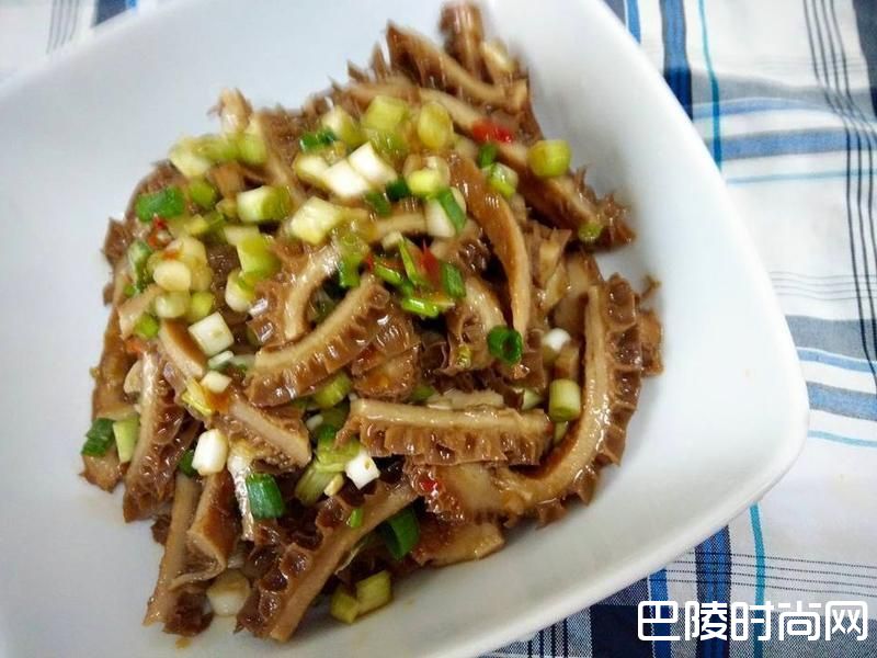 4:把牛肚捞出切丝 放入金针菇 五香粉 花椒粉 麻油 生抽拌一下撒上香葱即可
