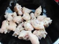 4、入猪蹄继续翻炒,加老抽、陈醋和适量盐调味,添水没过猪蹄。