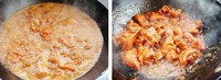 3.锅内烧热油,放入沥干水份的猪蹄翻炒1分钟,加入两大匙腐乳汁翻炒均匀