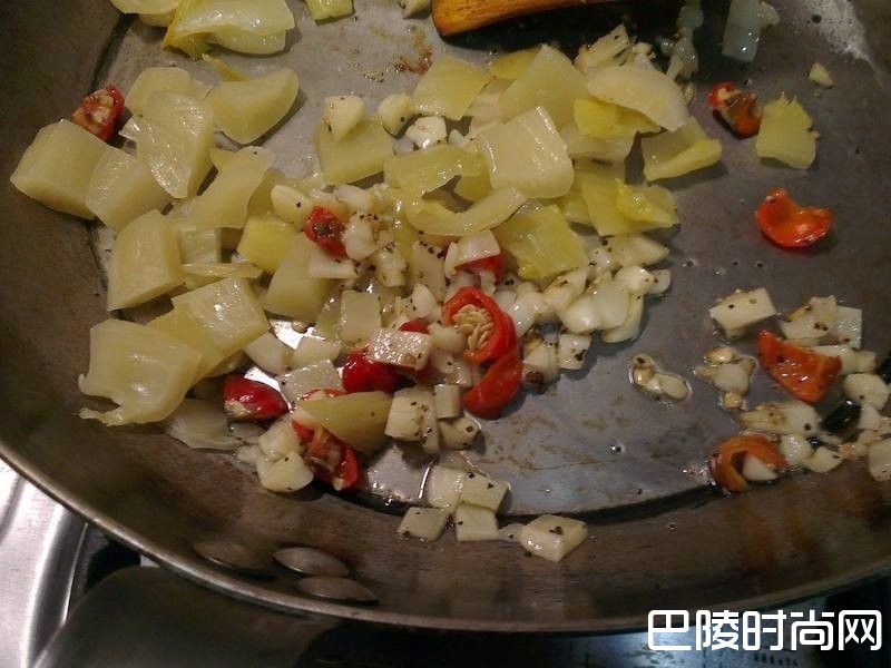 3再加入咸菜一起拌炒出咸菜香味