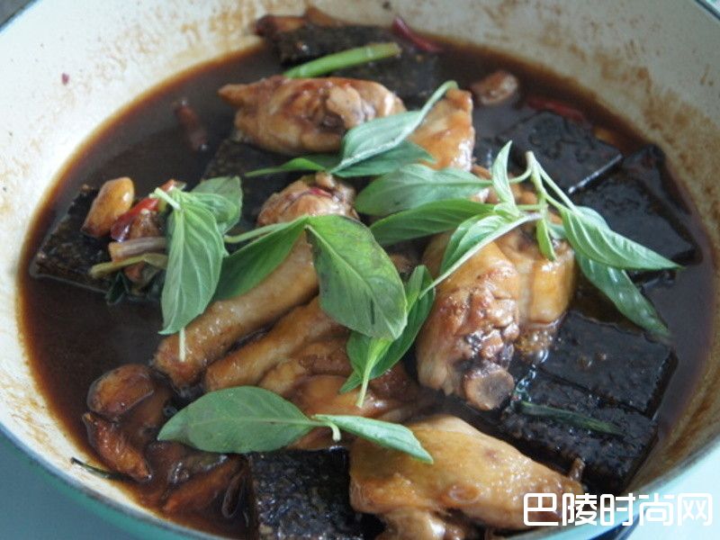 等到酱汁略微收干后,加入九层塔拌炒一下即可起锅