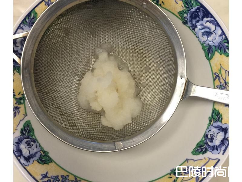 2白萝卜去皮磨成泥,用滤网将萝卜汁沥干