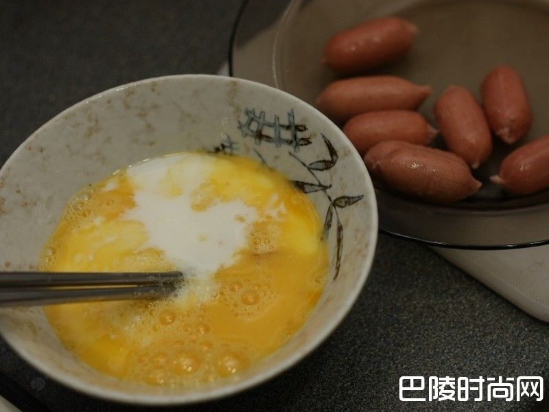 1蛋液打散,加入调味搅匀备用。鑫鑫肠切三刀,让章鱼有六只脚。