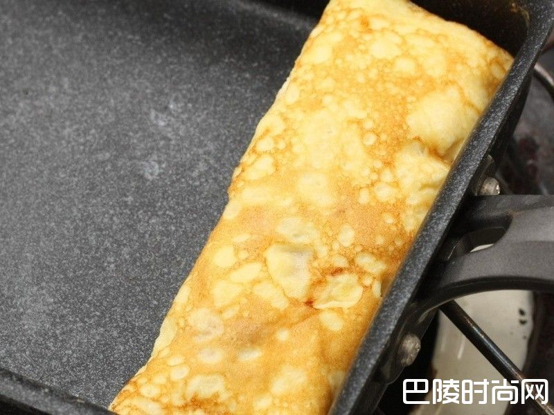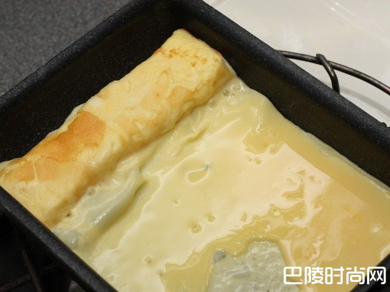 3卷到前面后再倒第二份蛋液,把第一份蛋卷稍稍抬起来,让蛋液包住蛋卷。(好难表达)