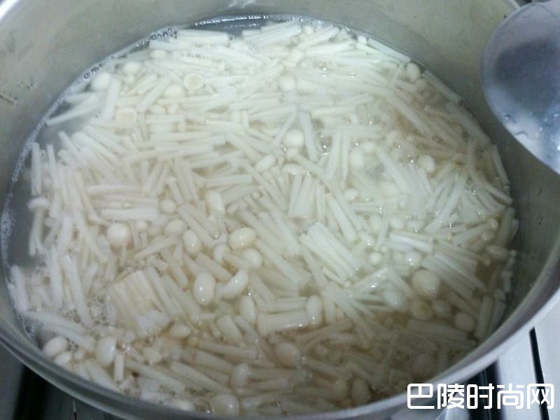 2先把金针菇的根切掉,切段后清洗干净备用(切段较好入口)。