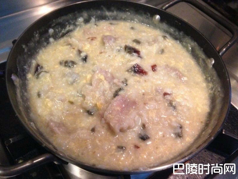 4另取锅放入白饭及鸡高汤煨煮,煮至浓稠成粥状。