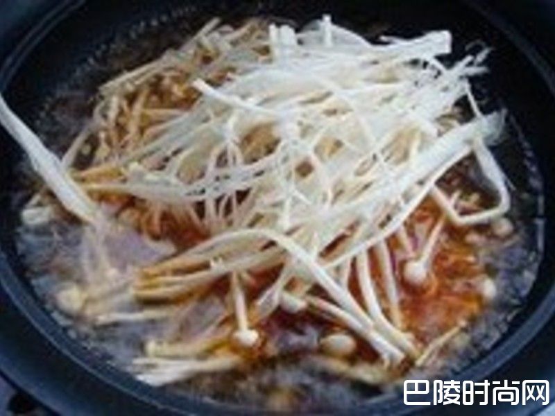 4大火烧开后放入金针菇。