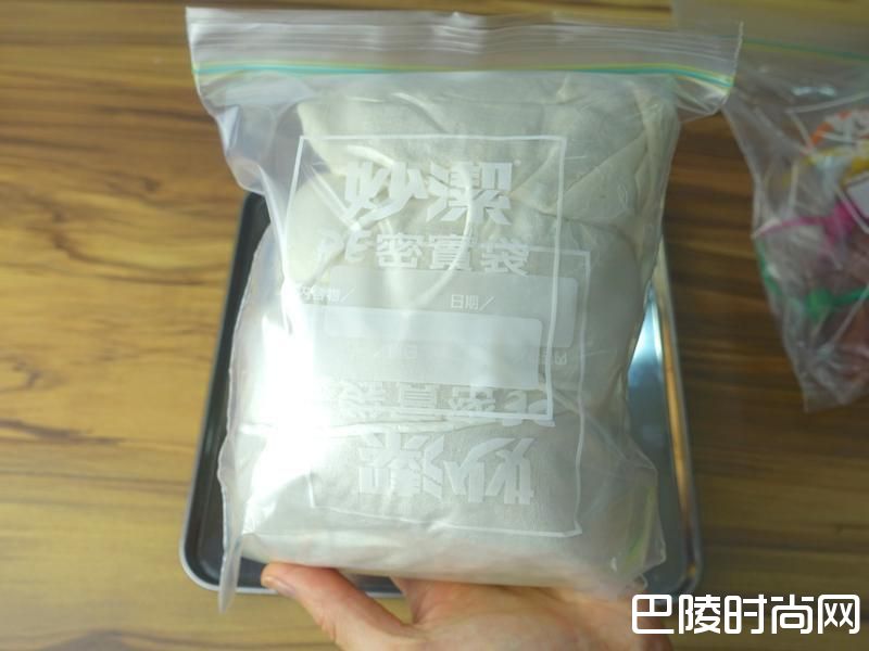 5两天后,取出火腿,去除外面的厨房纸巾后,用棉绳或是矽胶绳为火腿塑形. 放入双层夹链袋当中.