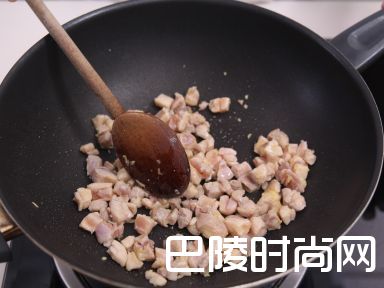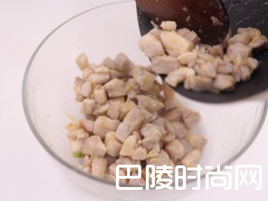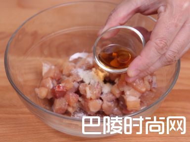 2把鸡腿肉切成小粒,加入腌料腌15-20分钟