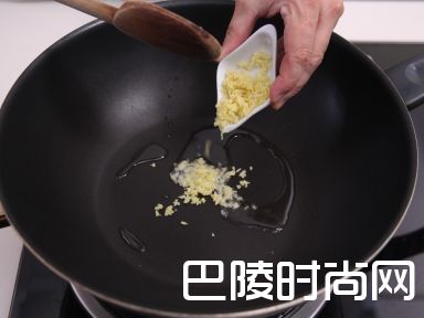 5中高火烧热平底锅,落大约两汤匙油,炒香姜蓉