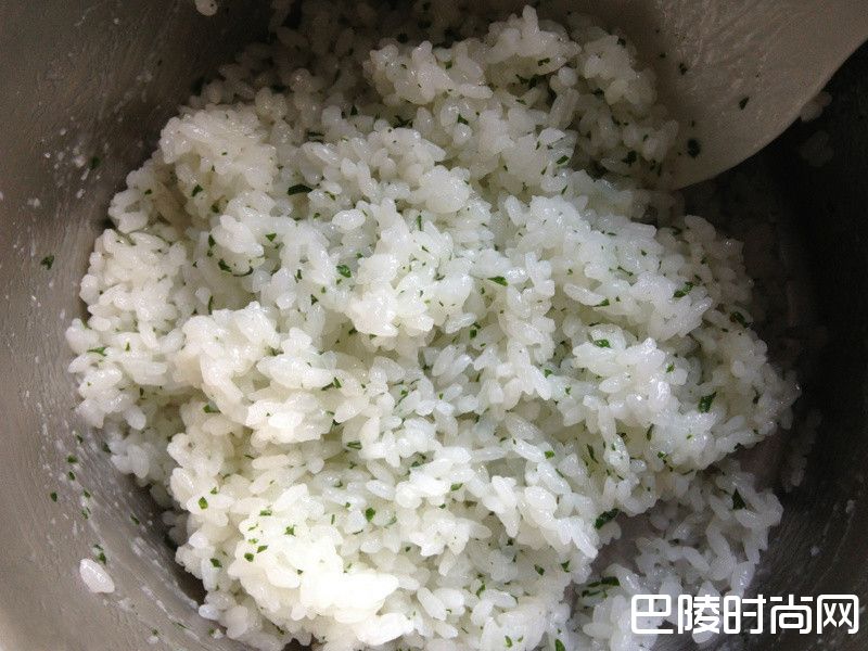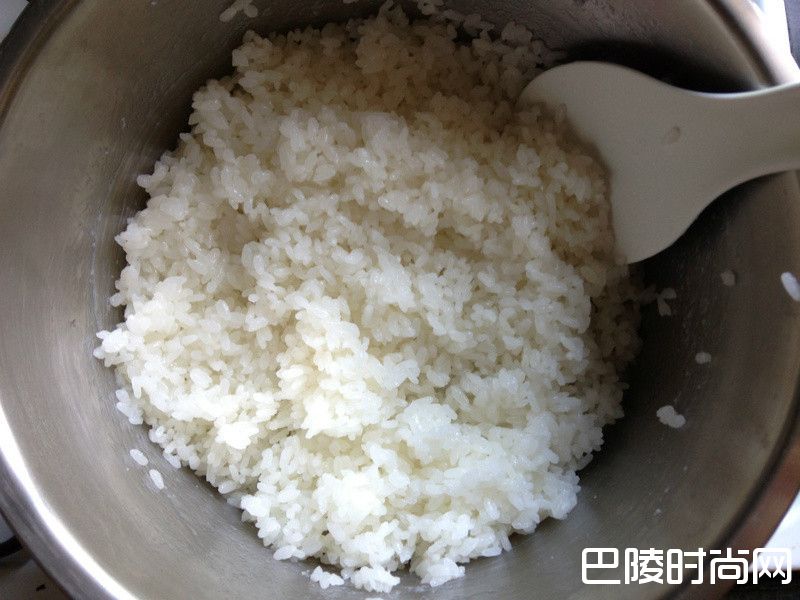 3蒸好的饭挑掉巴西里梗,趁热加进寿司醋拌匀