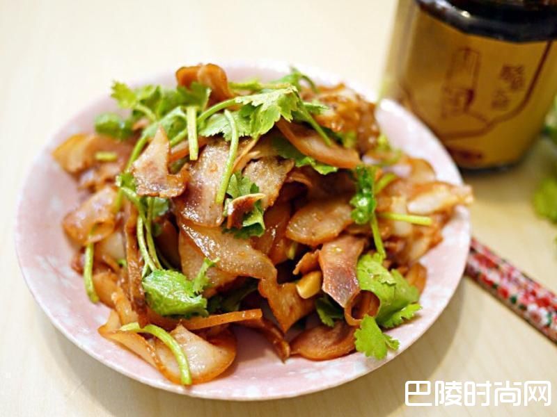 3拌好的猪耳朵呈盘,再放上少许香菜段即可(夏天拌好要先放入冰箱,等要吃的时候再取出)
