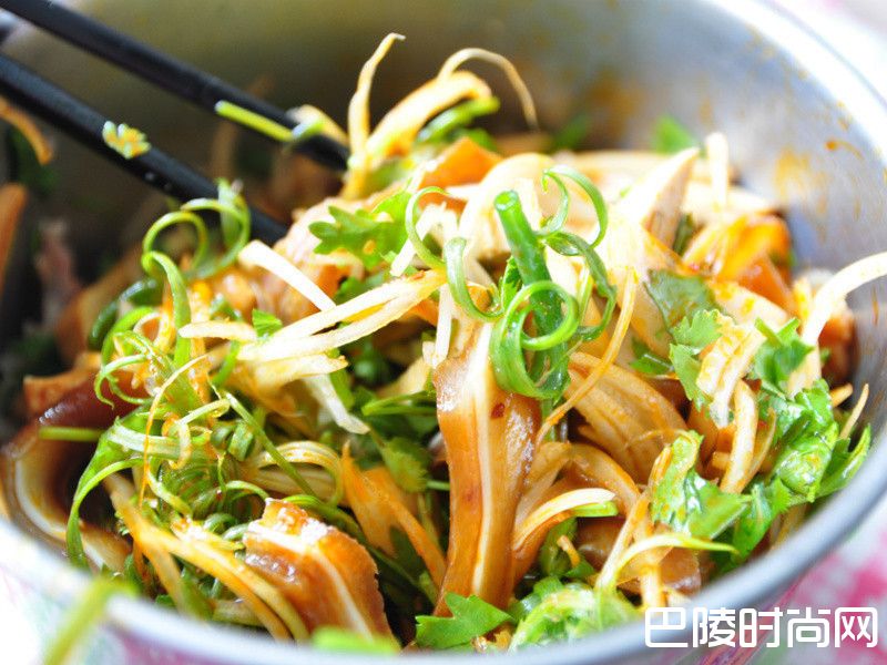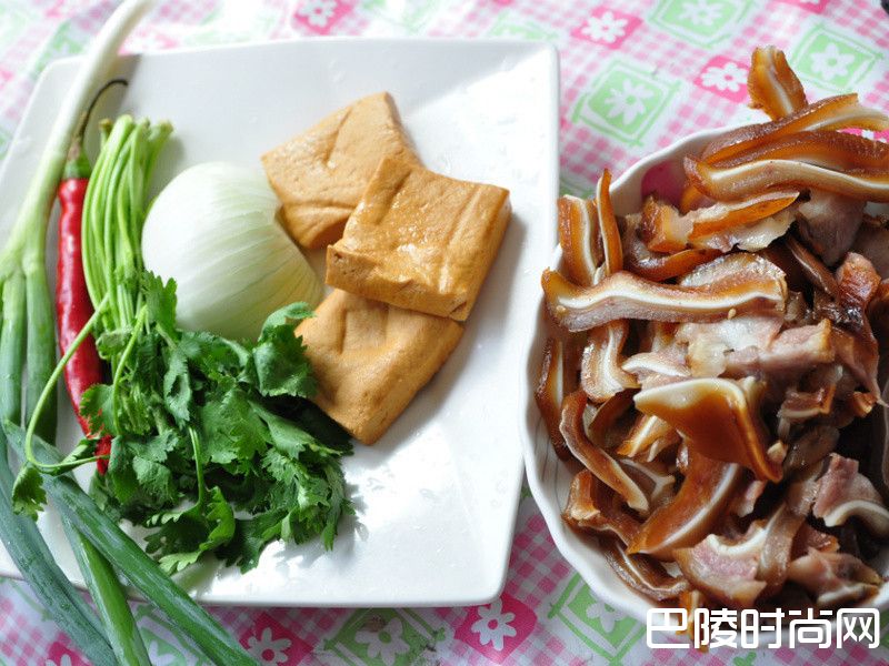 1备料如图~豆干先用滚水川烫,再切薄片或细丝