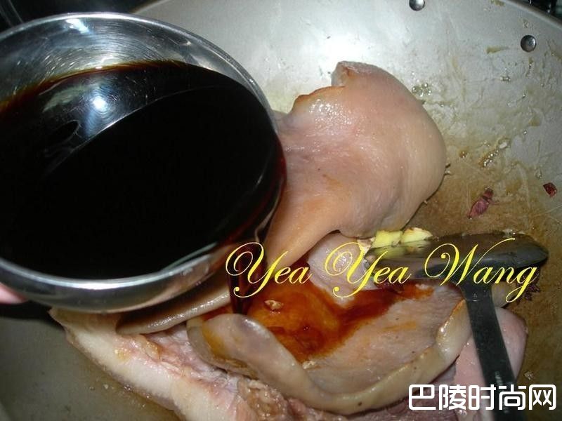 5倒入酱油.酱油膏.米酒及水盖上锅盖以中小火闷煮45-50min,过程记得要翻面让每个部位都能均匀受热