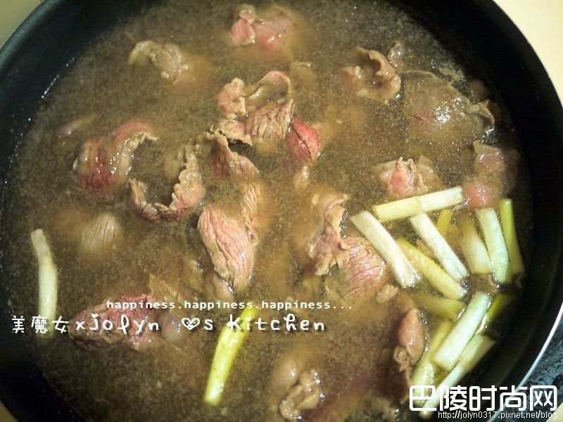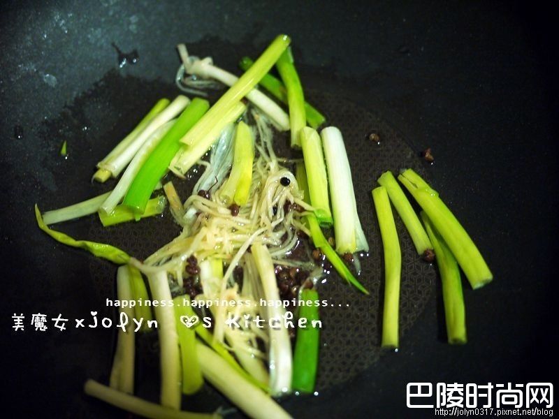 23大匙油热锅,加入葱段/花椒粒/姜丝拌炒至葱段变微黄