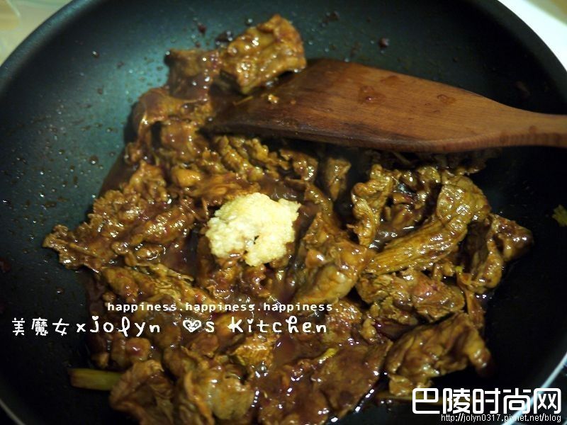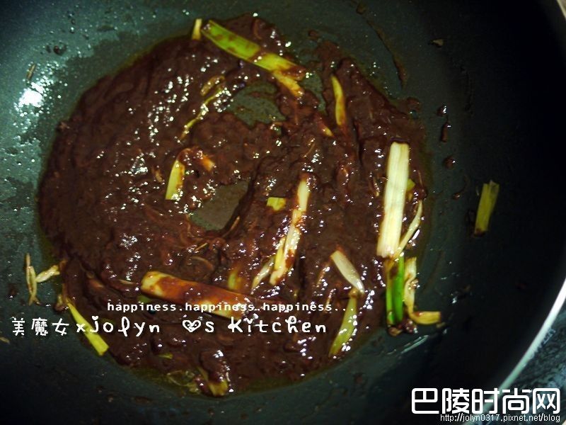 3加入6大匙豆瓣酱(我选的是辣度1的辣豆瓣)炒香
