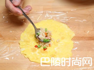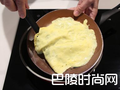 2在锅内高火加热适量油,将鸡蛋煎成蛋饼