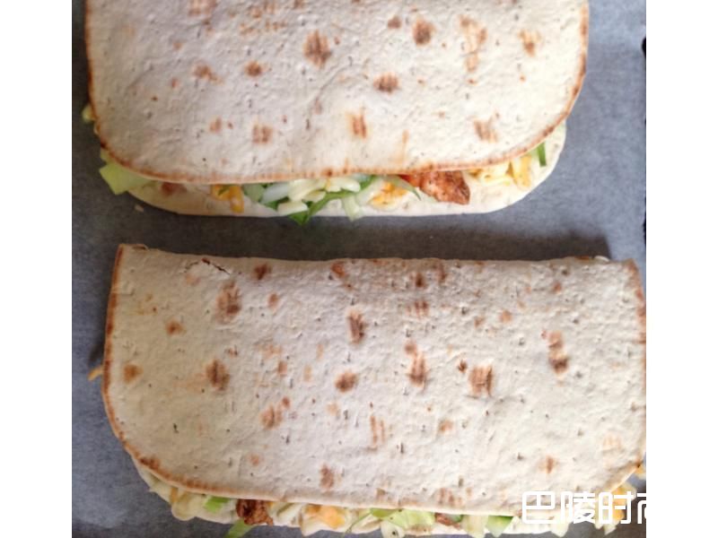 3墨西哥饼对折起来,烤箱200°c、10分钟。是2面各5分钟。