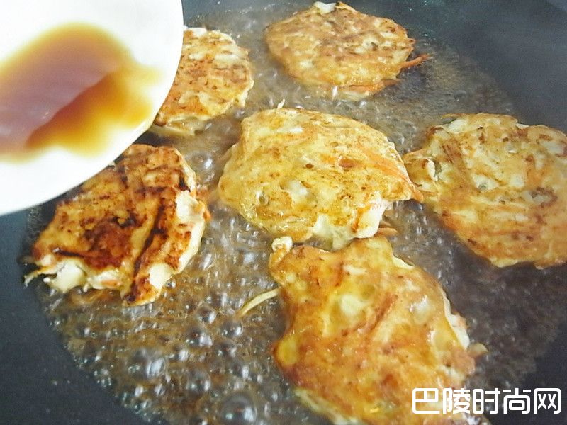 4平底锅加油烧热,煎到两面都呈现金黄色