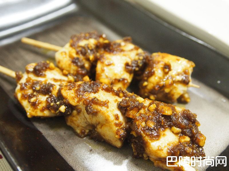 5鸡肉串翻面擦上些蜂蜜,再烤8~10分钟出炉,沾做法2的沙嗲酱一起吃。