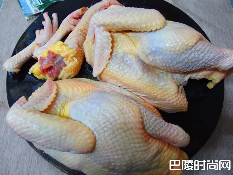 2把鸡剖成二半~去头和脚~