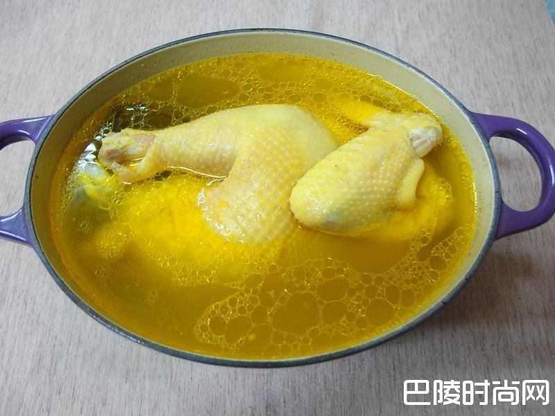 5铸铁锅由于蓄热的效果非常的好,利用蓄热的效果闷熟鸡肉的原汁味所在里面,整个鸡肉非常Q弹嫩弹牙,黄澄城的鸡油和鸡皮,是鸡肉好吃的保证,用看的就知道是好食鸡。