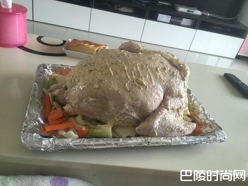 24 如果有多余的奶油就把它擦在火鸡上后移上材料