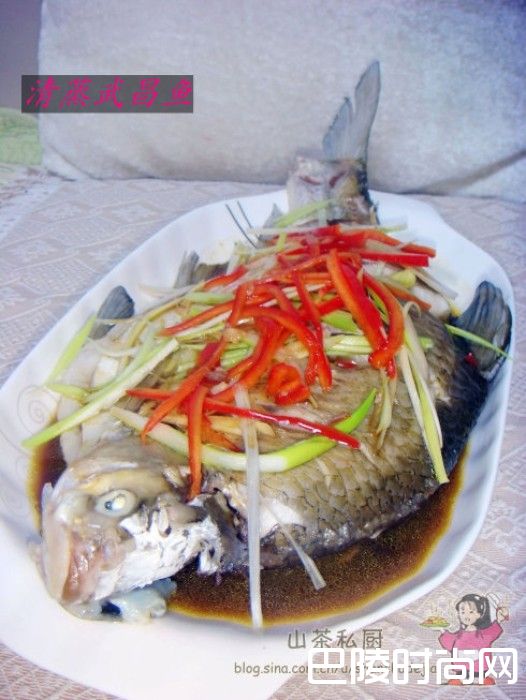 清蒸武昌鱼武昌鱼一条800克左右,葱丝,姜丝,红椒丝